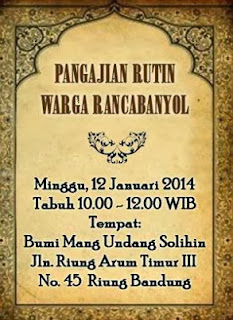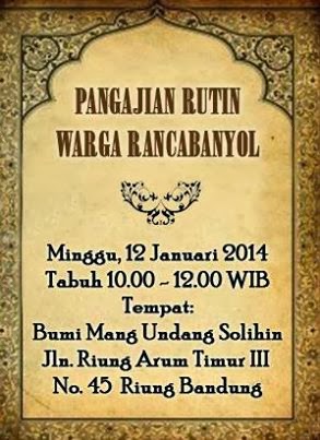 Untuk pengajian rutin bulan Januari 2014 akan dilaksanakan pada hari Minggu, 12 Januari 2014 di rumah Mang Undang Solihin, Jln. Riung Arum Timur III No. 45 Riung Bandung. Pengajian akan dilaksanakan mulai pukul 10.00 - 12.00 WIB. Kepada para baraya diharapkan untuk hadir pada pukul 09.00 WIB untuk shalawatan bersama terlebih dahulu. Setelah pengajian, akan diadakan rapat anggota Mitra Baraya untuk membahas mengenai persiapan kegiatan Milangkala Banyolan Sunda ke-5 dan juga event Mitra Baraya yang rencananya kana dilaksanakan pada awal Februari 2014.Untuk informasi lebih lanjut silakan kontak ke inbox akun Facebook Mitra Baraya atau hubungi 0877 2271 707 (Komandan Hansip Rancabanyol).